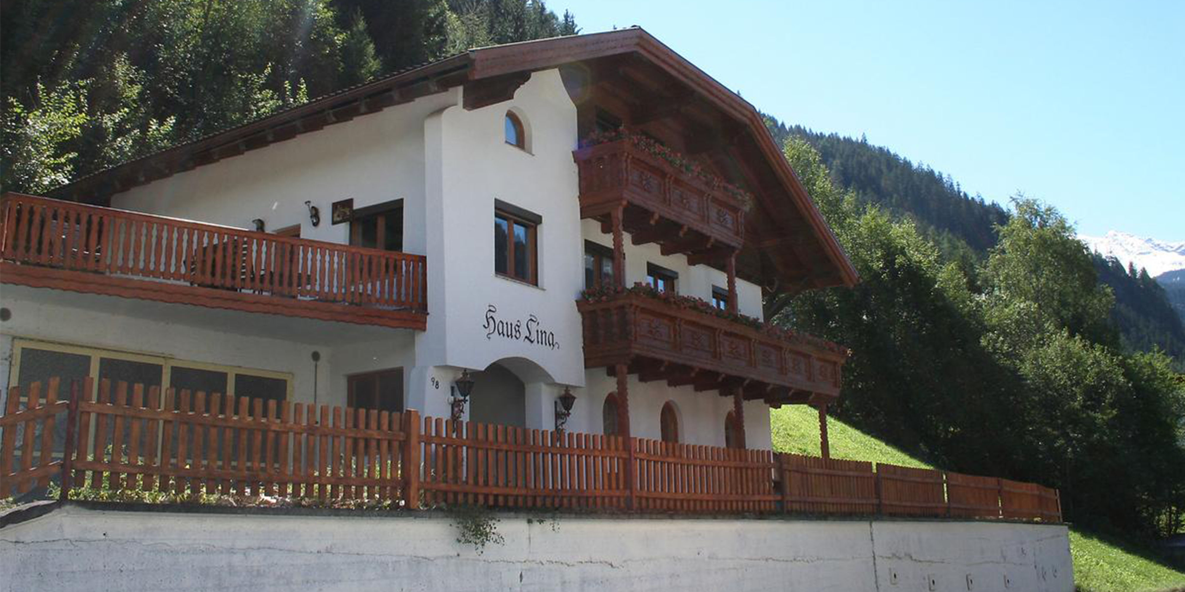 Haus Lina wurde 1985 erbaut und gehört zu den größeren Ferienhäusern in der Region. Dieses Familienhaus ist ideal für 2 oder 3 Familien. Das Haus im österreichischen Stil verfügt über einen eigenen Parkplatz mit Platz für 2 Autos in der geräumigen Garage und einen Parkplatz vor der Tür.